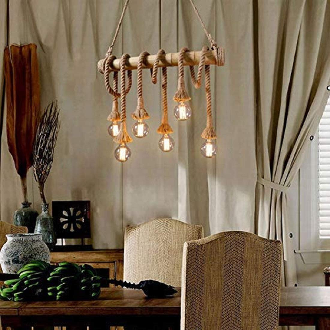 This lighting fixture works well in dining areas, living rooms, cafés, and open spaces. The 6 light design provides strong and balanced illumination, improving your home lighting while adding a decorative appeal. The rope detailing adds texture and warmth, enhancing your interior lighting with a cozy and inviting atmosphere.