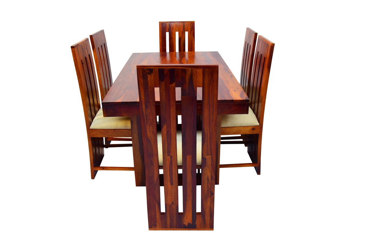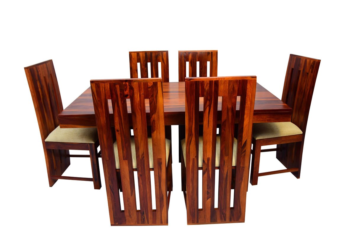 Shop Blue City Decor AmberCraft 6 Seater Dining Table Solid Wood Set, crafted from premium solid wood for lasting strength and style. A perfect wooden dining table set for modern dining room furniture.