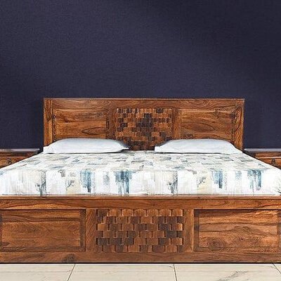 Blue City Decor Aviraj Artisan Carved Wood Bed