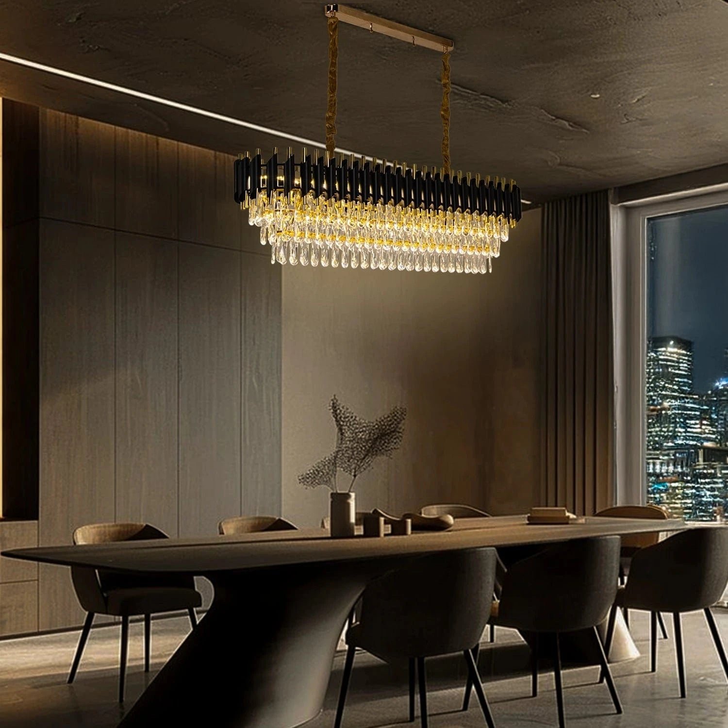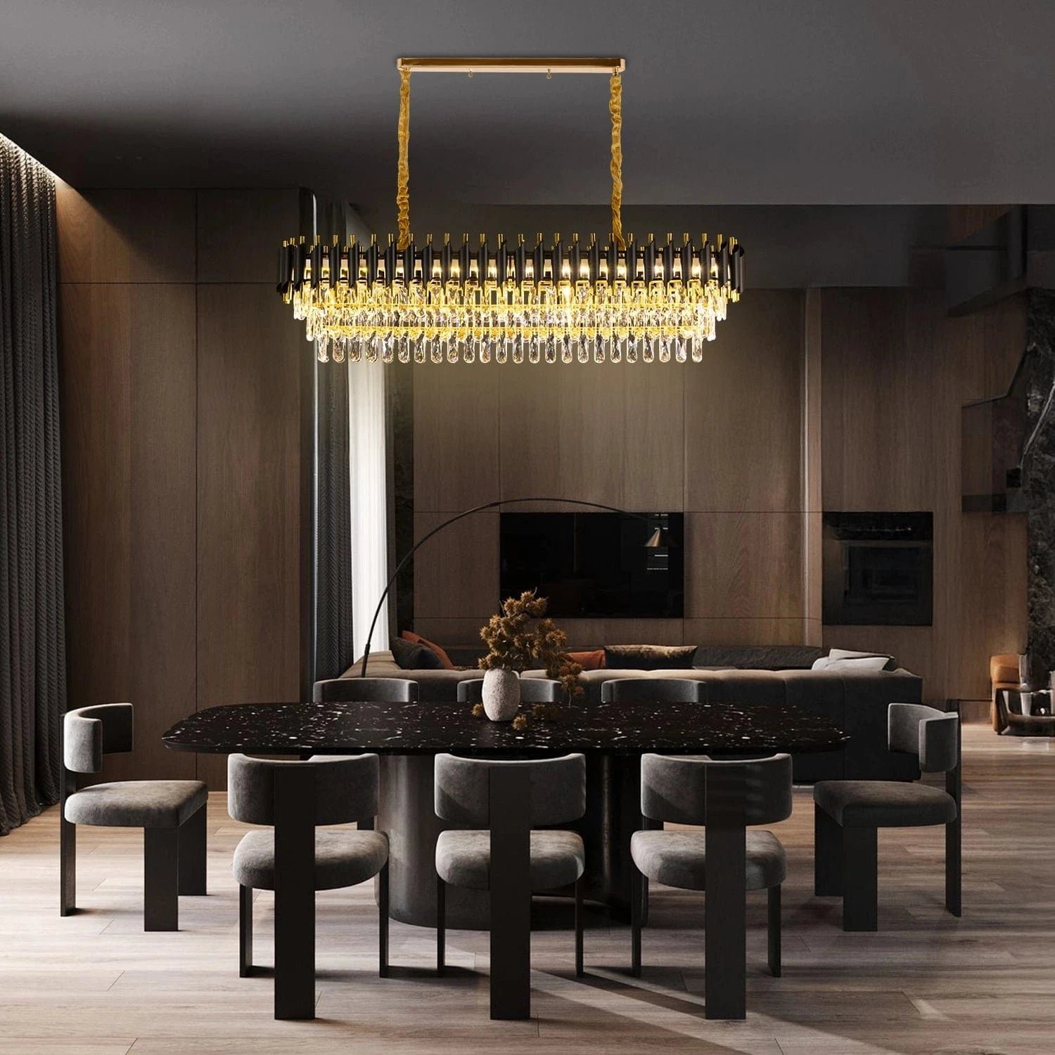 Bring a sleek and modern touch to your space with the Blue City Decor Black Mamba Oval Crystal Chandelier. This beautifully designed chandelier features an oval shape that adds a sense of flow and balance to your interiors. The dark crystal elements create a bold yet elegant look, making it a perfect choice for modern lighting setups.