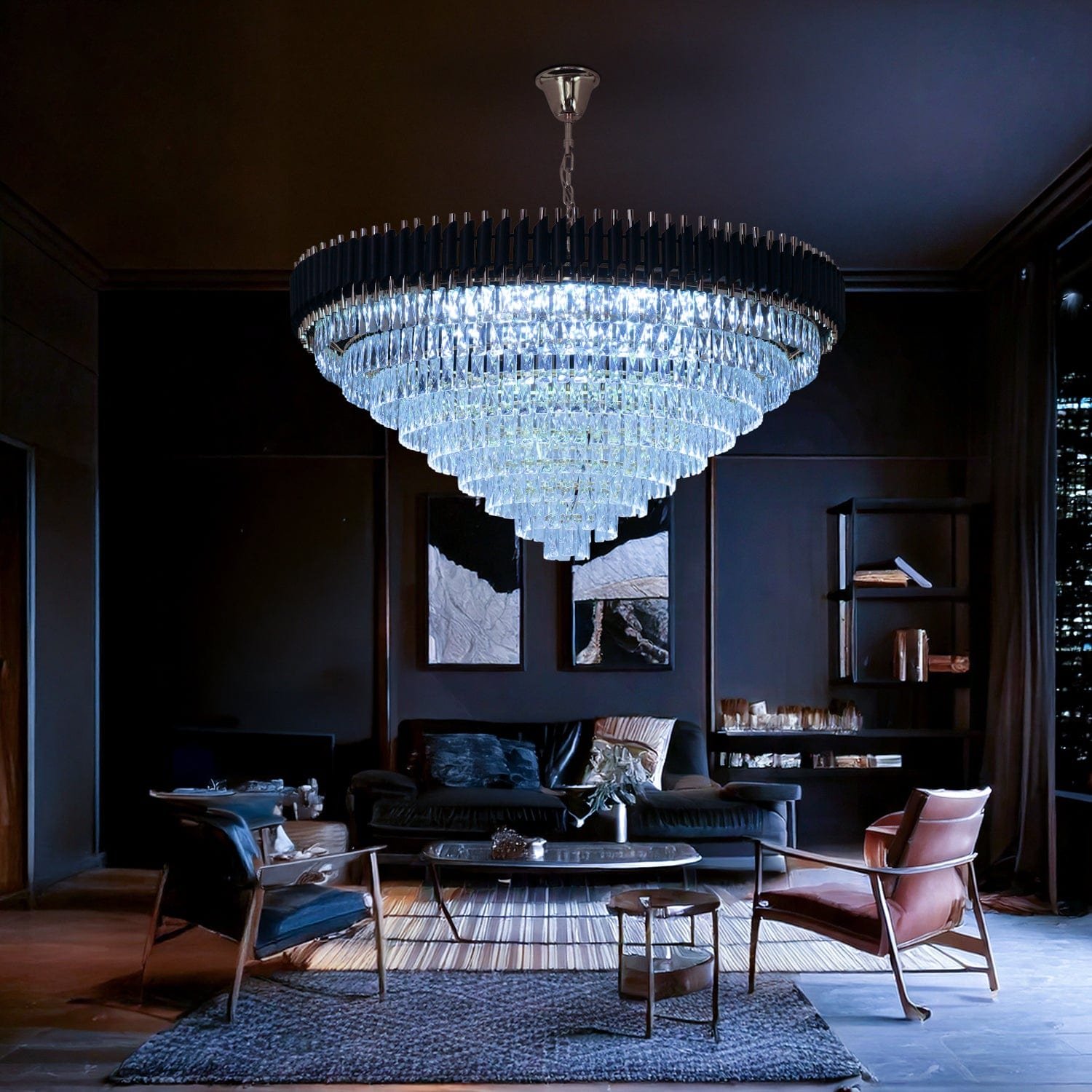 Add a bold and modern statement to your space with the Blue City Decor Black Mamba Round Crystal Chandelier. This eye-catching chandelier features a round design with dark crystal elements that create a striking and elegant look. It is perfect for those who want modern lighting with a strong and stylish presence.