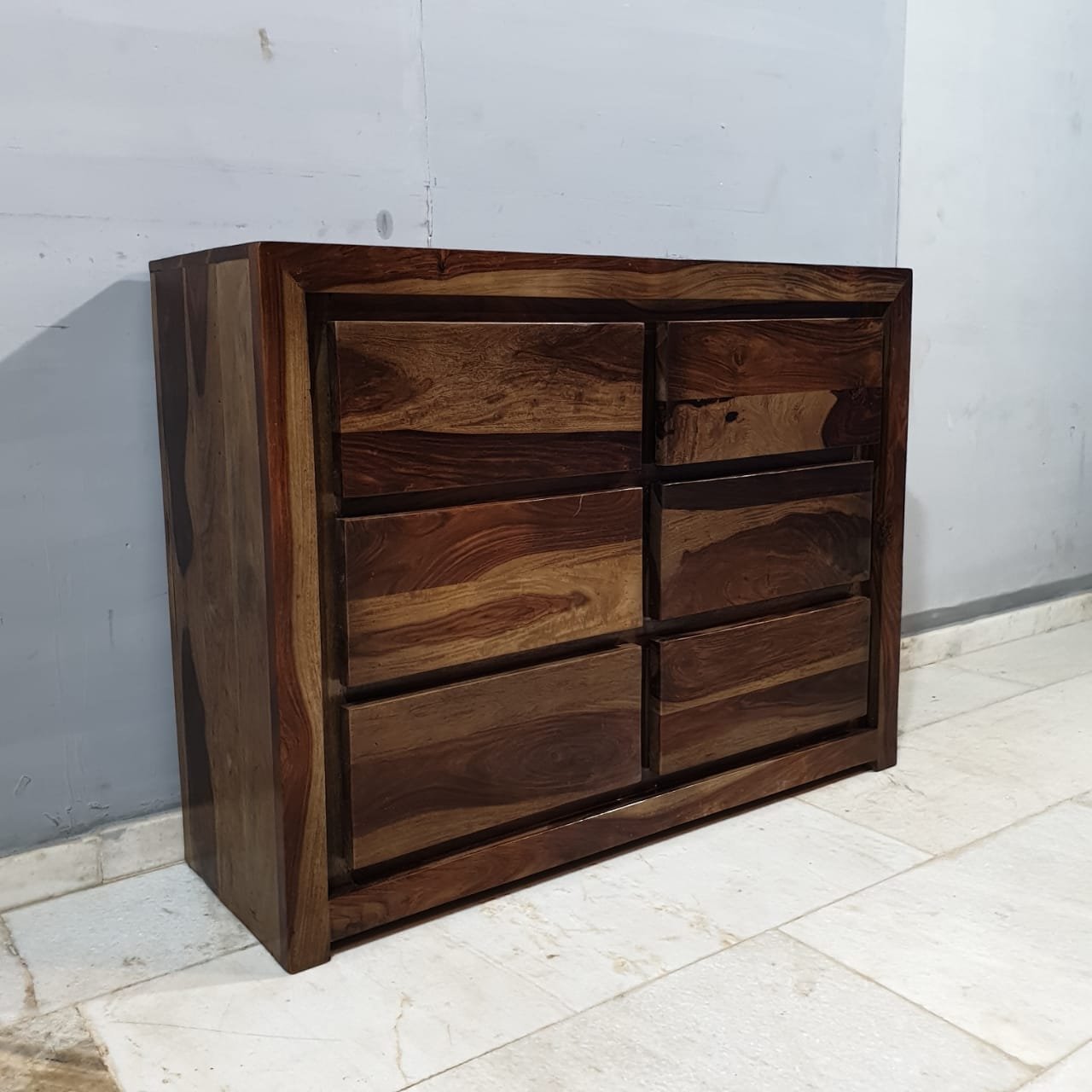 With six spacious drawers, this wooden chest of drawers offers excellent storage for clothing, accessories, linens, or household items. It is an ideal choice for bedroom furniture, helping you keep your room organized and clutter-free. You can also place it in your living room, where it becomes a functional part of your living room furniture, serving as a stylish display unit for décor pieces, books, or essentials.