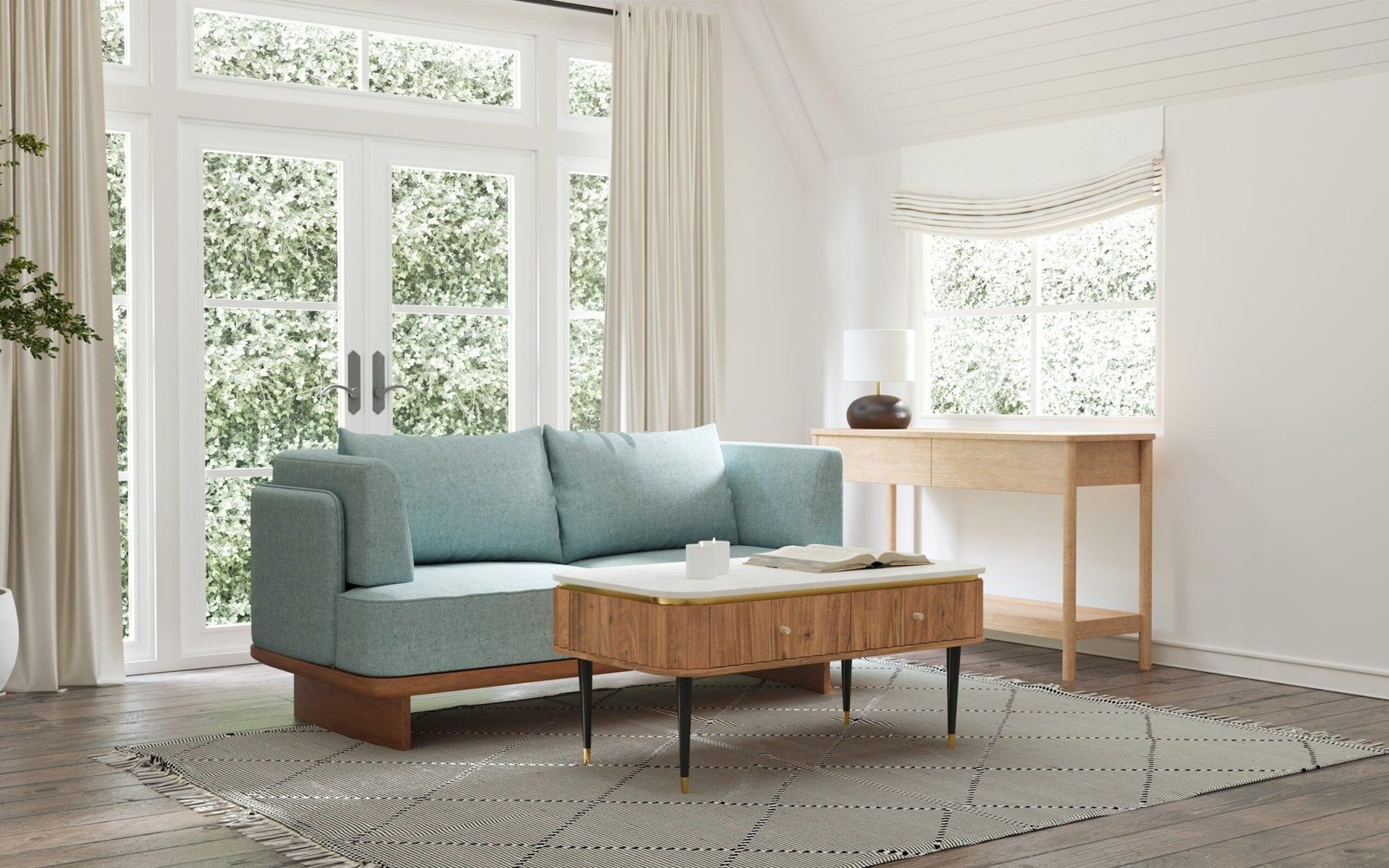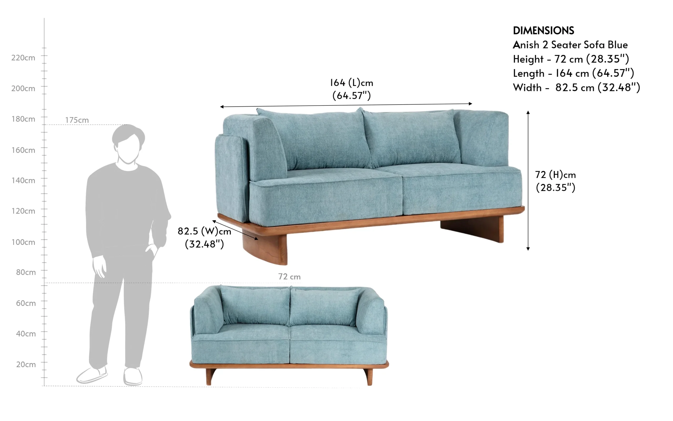 Upgrade your living space with Blue City Decor CityCraft 2 Seater Sofa. Crafted from solid wood, this wooden sofa adds comfort, durability, and timeless style to modern living room furniture.