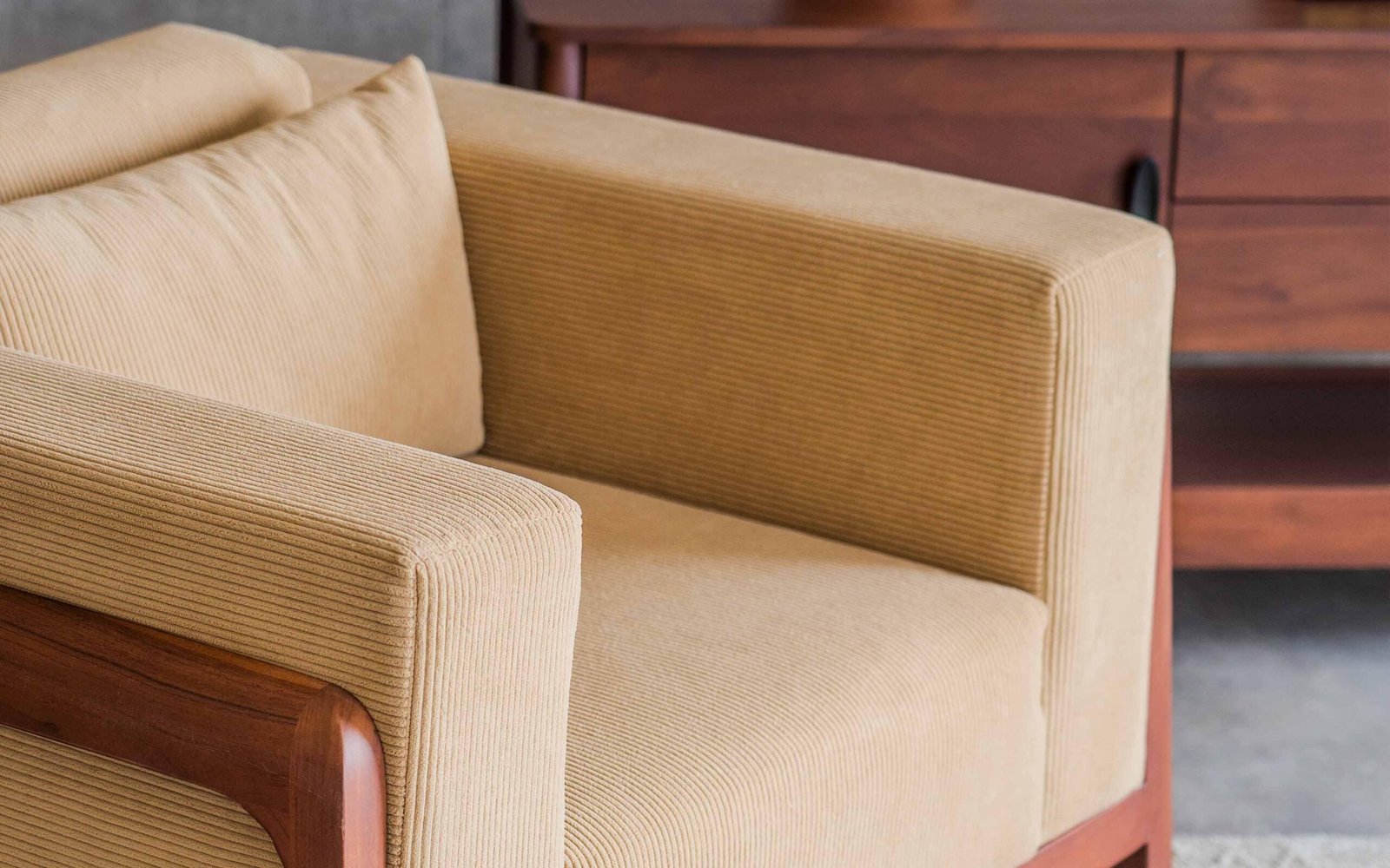 Blue City Decor Classic Comfort 1-Seater Sofa crafted from solid wood, perfect for living rooms. A stylish wooden sofa offering comfort, durability, and timeless design.
