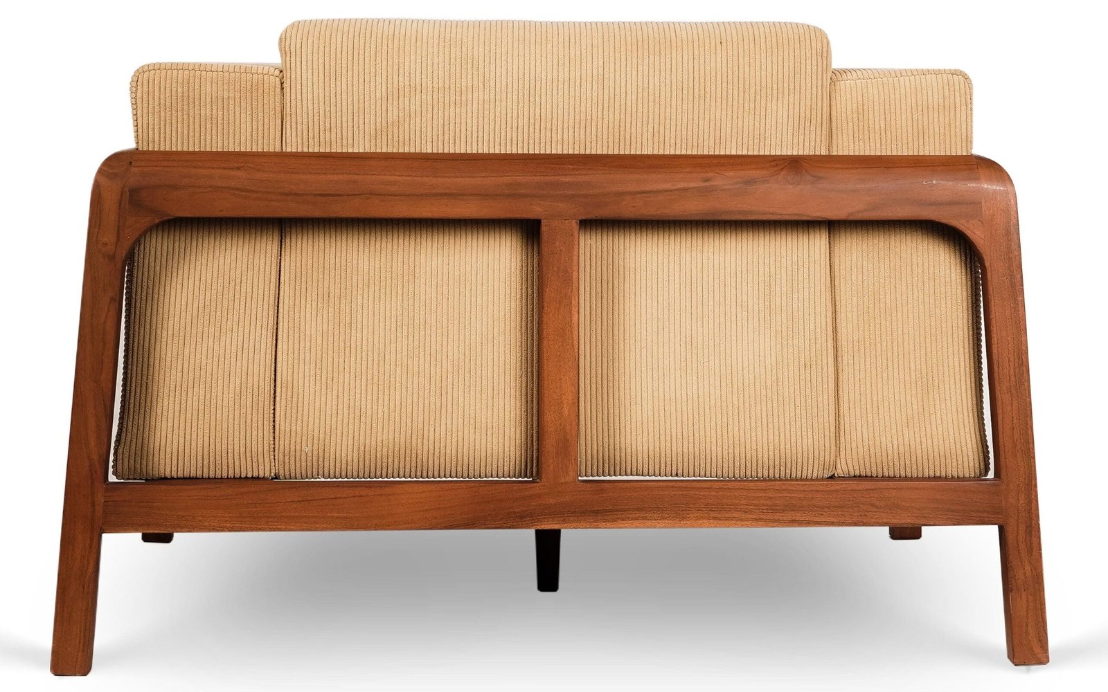The classic design blends easily with modern and traditional interiors, making it a versatile piece of living room furniture. The natural wood finish highlights the beauty of solid wood furniture and adds a rich, timeless appeal to your home. This wooden sofa set option is also easy to maintain and remains stylish for years.