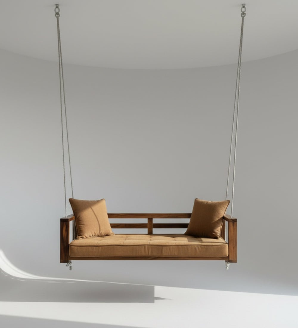 The Blue City Decor Classic Minimal Wooden Swing is designed for modern homes that value simplicity and comfort. This stylish wooden swing is crafted from high quality solid wood furniture, which ensures strength, durability, and long term use. The clean and minimal design gives it a modern look while keeping the natural beauty of the wood visible.