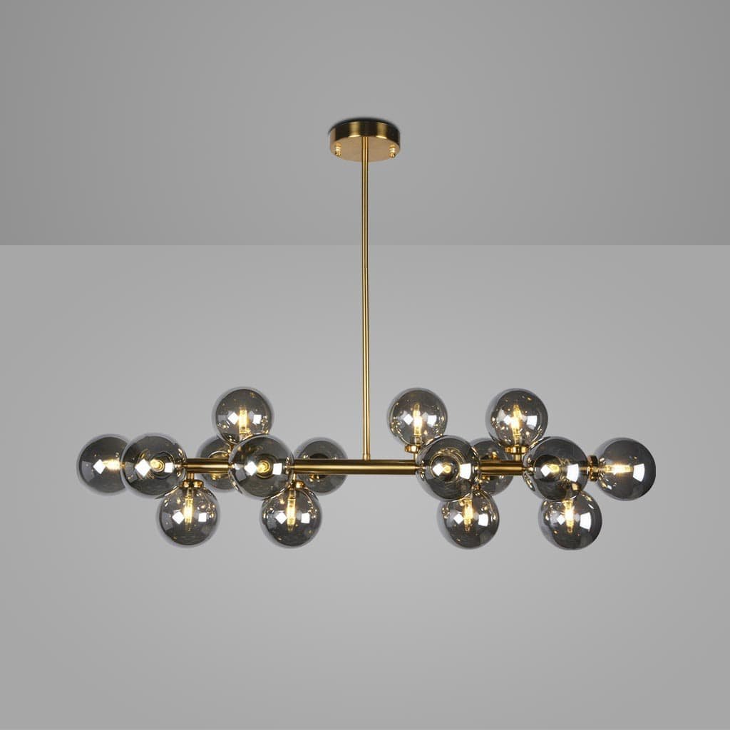 Bring a grand and elegant look to your interiors with the Blue City Decor Feliora Smoke Glass Multi-Arm Chandelier 14 Light. This stunning lighting piece features multiple arms with smoke glass shades, creating a rich and modern appearance. It is a perfect choice for those who want luxury lighting that stands out and enhances the beauty of their space.