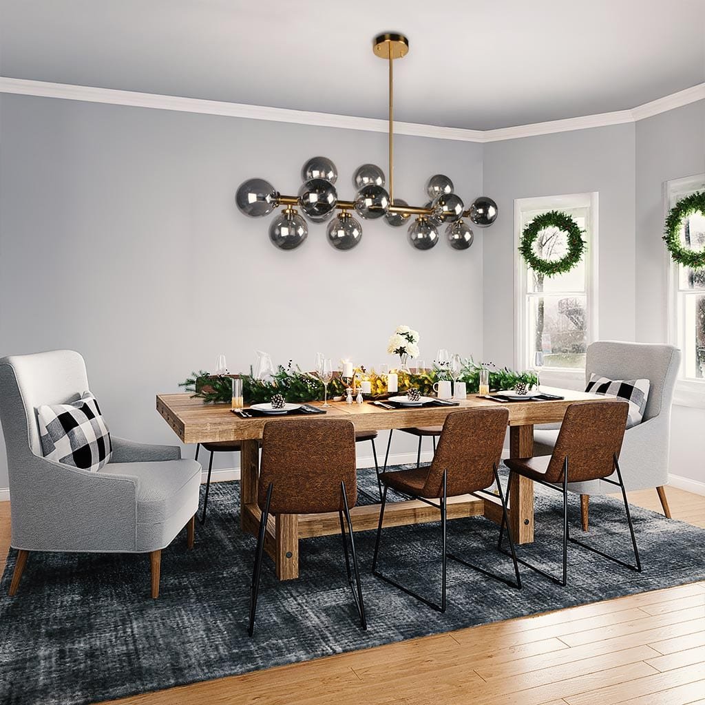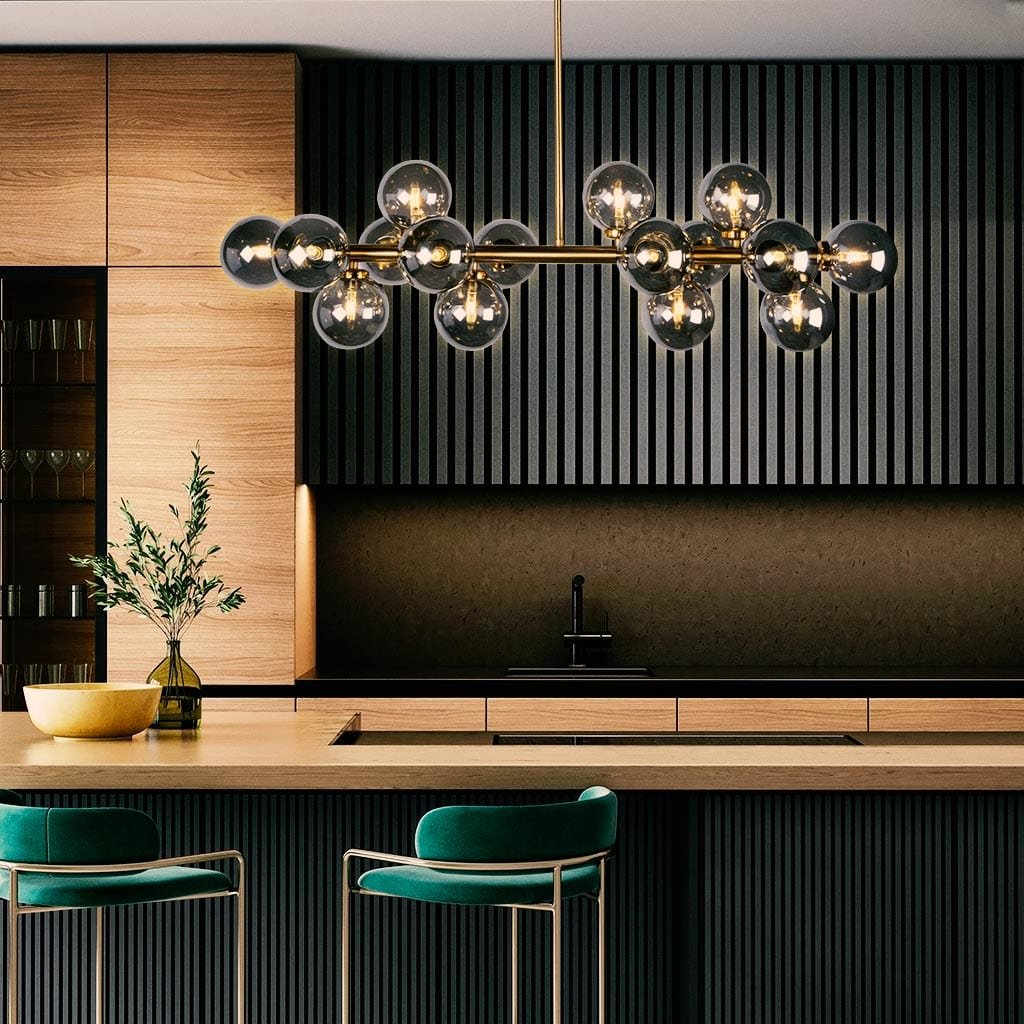 This chandelier works beautifully in living rooms, dining areas, double-height spaces, and premium commercial settings. It provides wide and balanced lighting, improving your home lighting and making your interior lighting more effective and stylish. The smoke glass design adds depth and creates a soft and warm glow, making your space feel inviting.