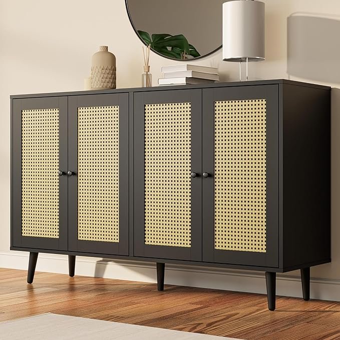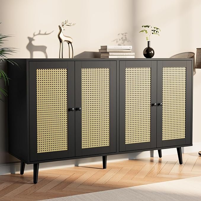 The Blue City Decor Golden Weave 4-Door Rattan Sideboard blends natural beauty with everyday practicality. Made from strong solid wood, this premium sideboard features hand-woven rattan doors that add texture, warmth, and a touch of modern craftsmanship to your home. The light, natural weave creates an airy look that fits beautifully in both classic and contemporary interiors.