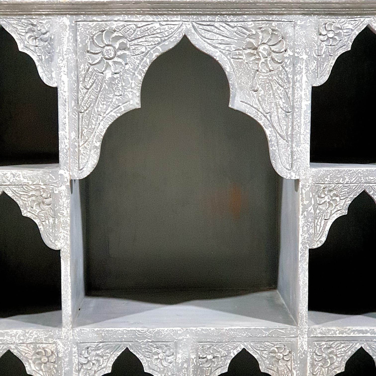 Blue City Decor Grey Royale Carved Solid Wood Bookshelf