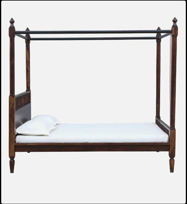 This poster bed features a strong frame with tall posts that create a classic look while keeping the design balanced and inviting. It is available in both king size bed and queen size bed options, allowing you to choose the right size for your room and comfort needs. The solid wood construction offers excellent support and stability for everyday use.