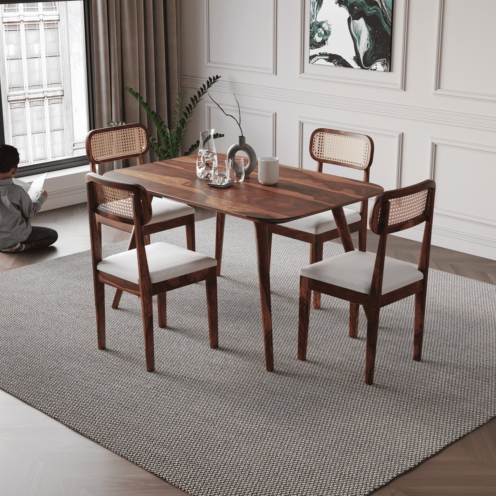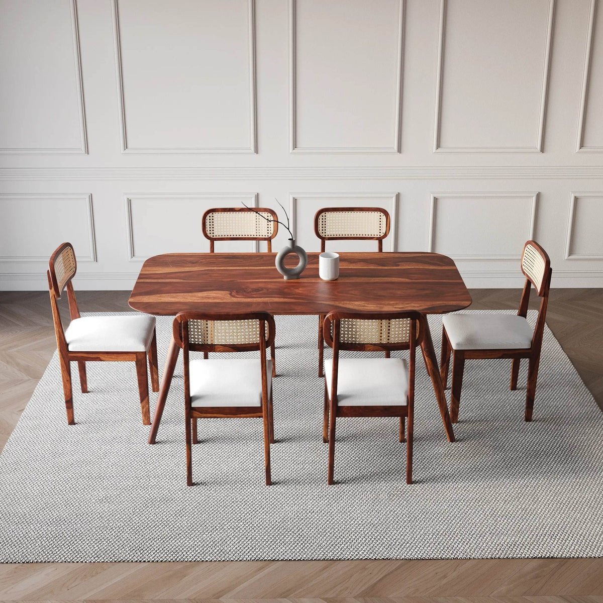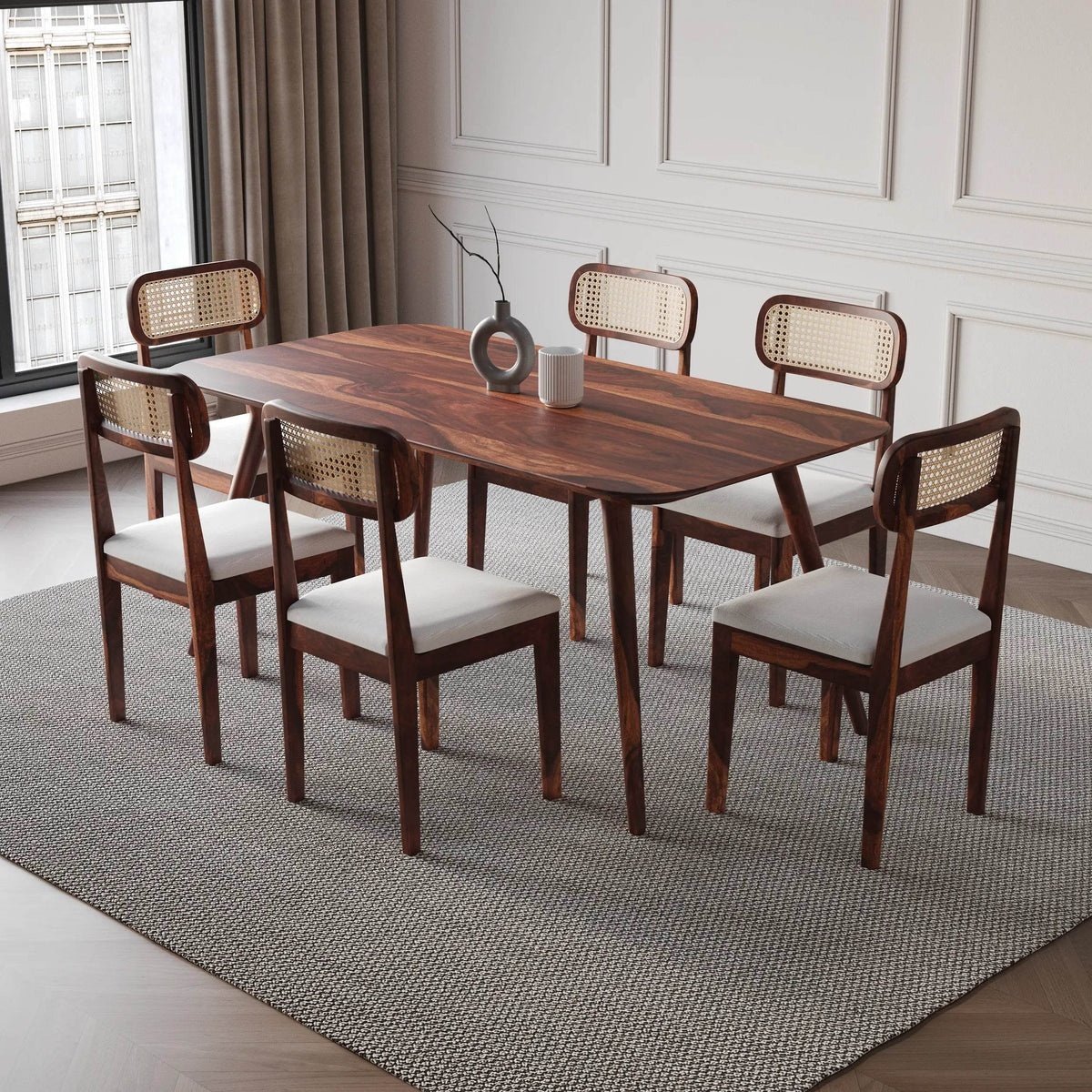 Buy Blue City Decor HeritageCraft Sheesham Dining Table Set for Six Seater made from premium solid wood. A strong and stylish wooden dining table set designed to elevate dining room furniture with comfort and durability.