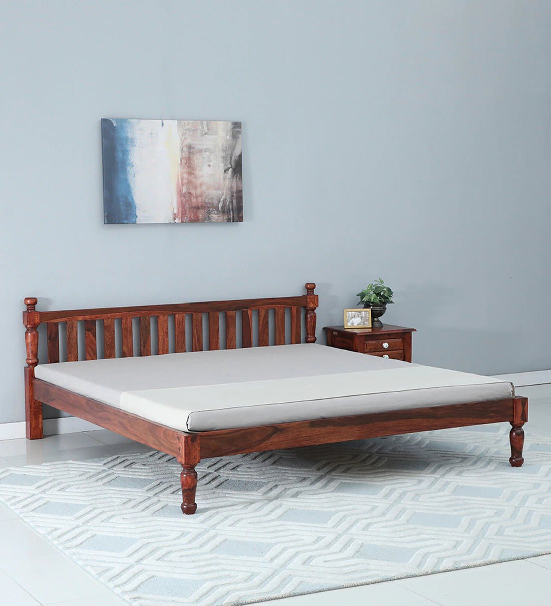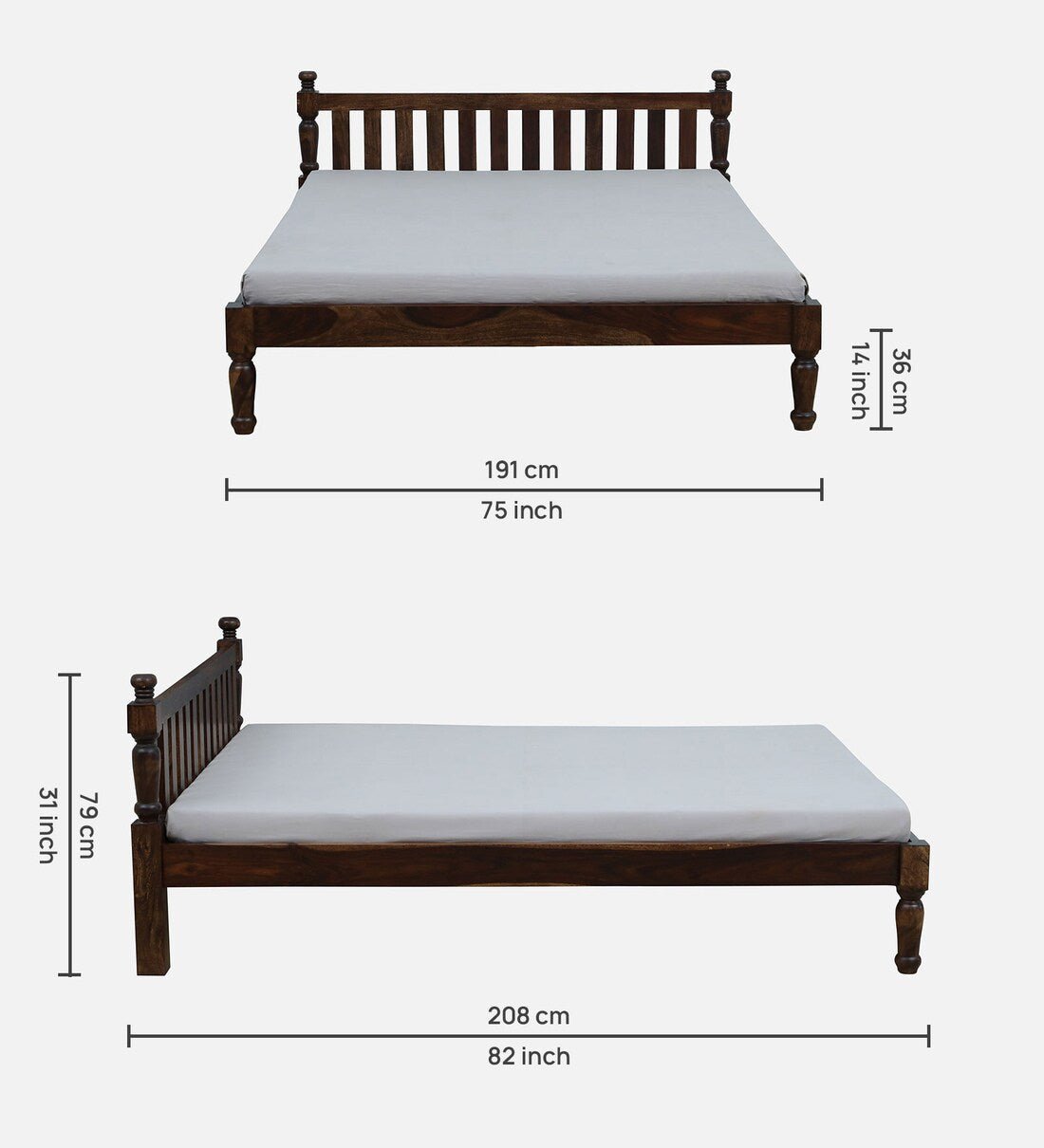 This bed is available in king size bed and queen size bed options, making it suitable for both spacious master bedrooms and compact living spaces. The sturdy frame and clean structure take inspiration from traditional poster bed designs, giving the bed a balanced and refined presence without heavy ornamentation. The solid wood construction ensures stability and reliable mattress support.