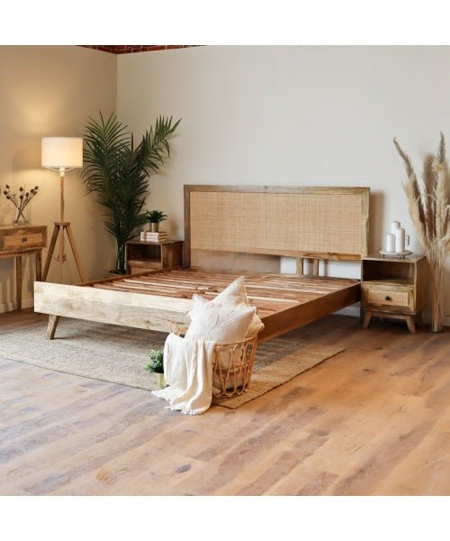 Blue City Decor Signature Cane Solid Mango Wood Bed