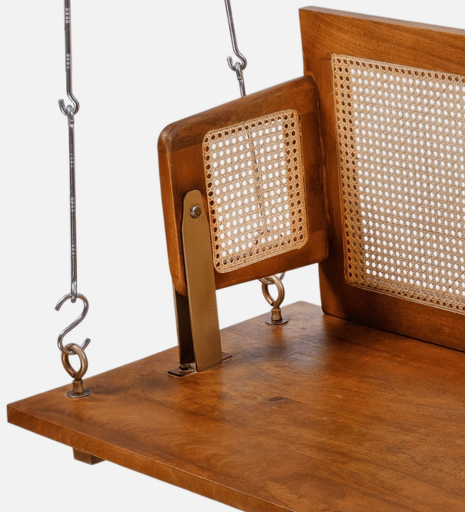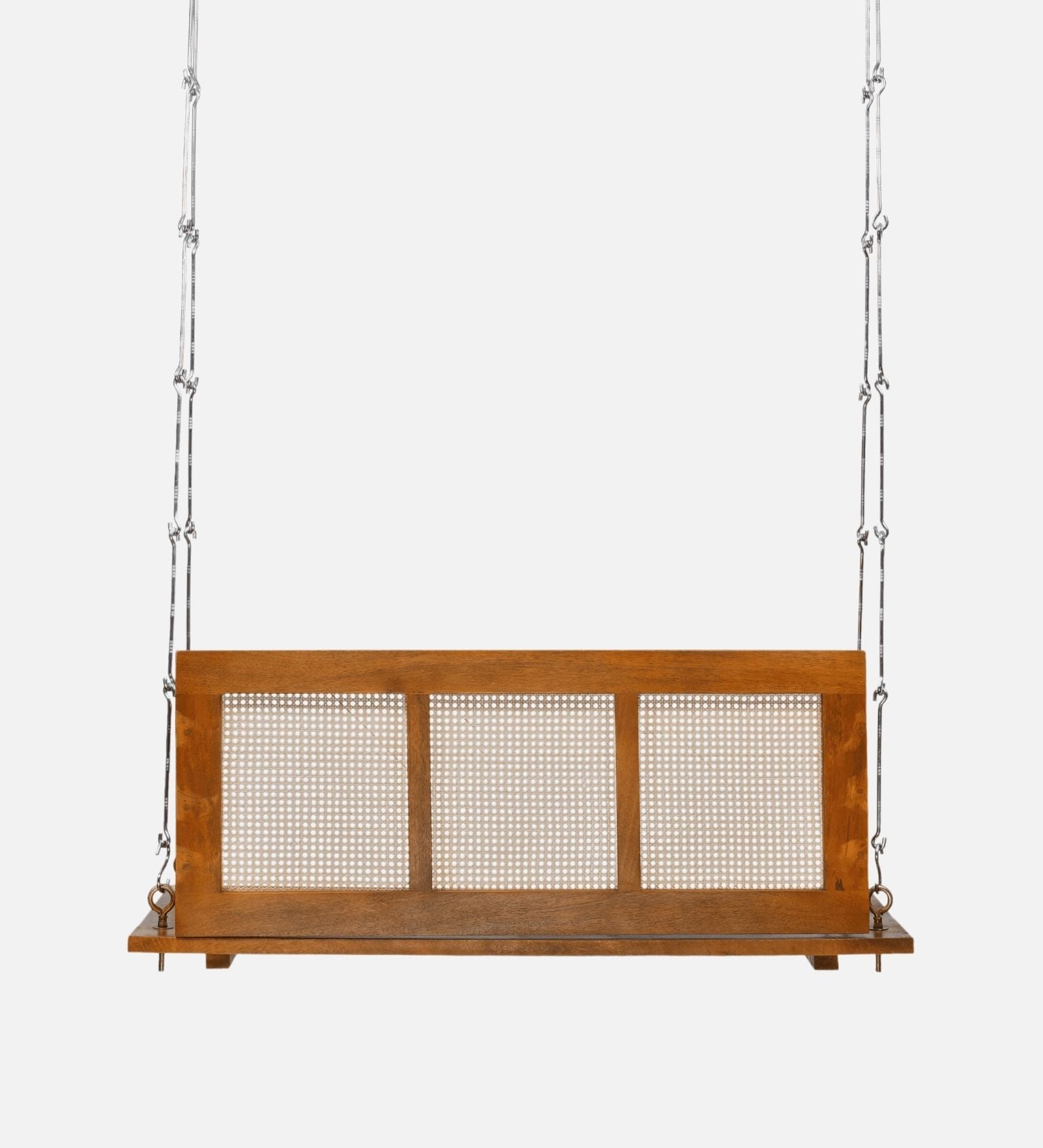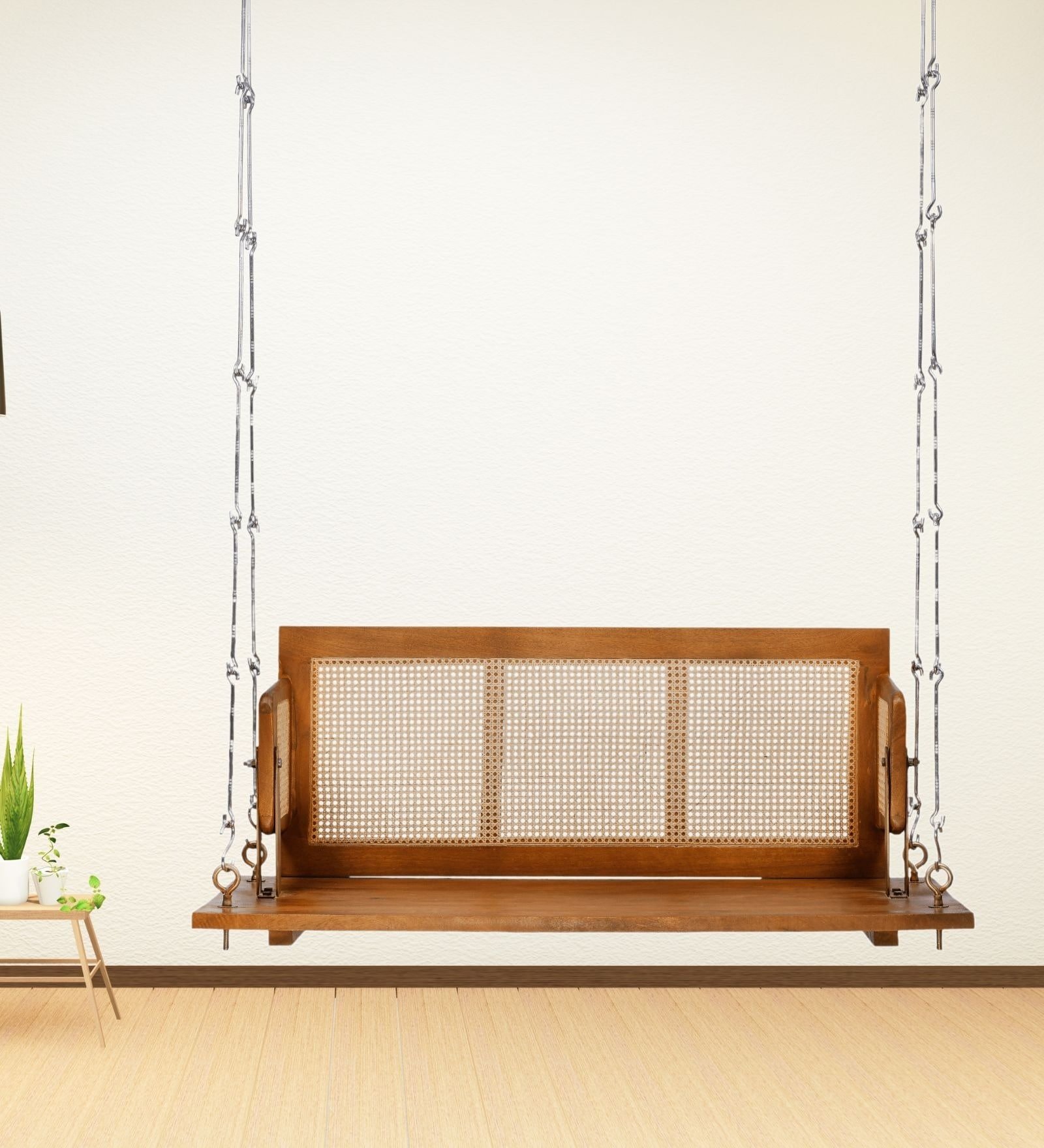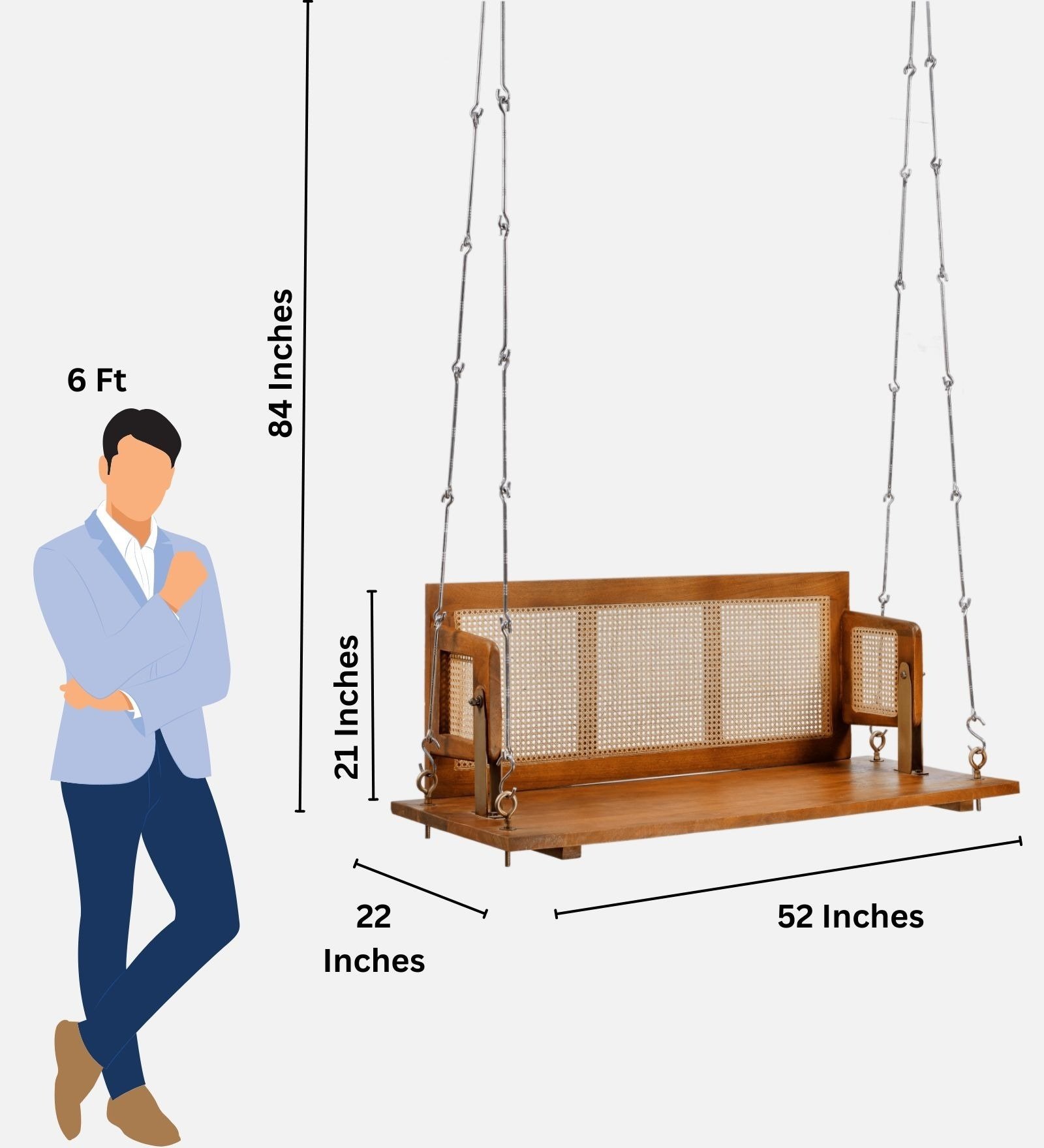 The Blue City Decor Solid Wood Rattan Two Seater Swing in Rich Brown Finish is designed to bring comfort, style, and durability into your home. Crafted from high quality solid wood furniture, this elegant wooden swing offers strong support and long-lasting performance. The rich brown finish highlights the natural texture of the wood, while the rattan detailing adds a unique and stylish touch.