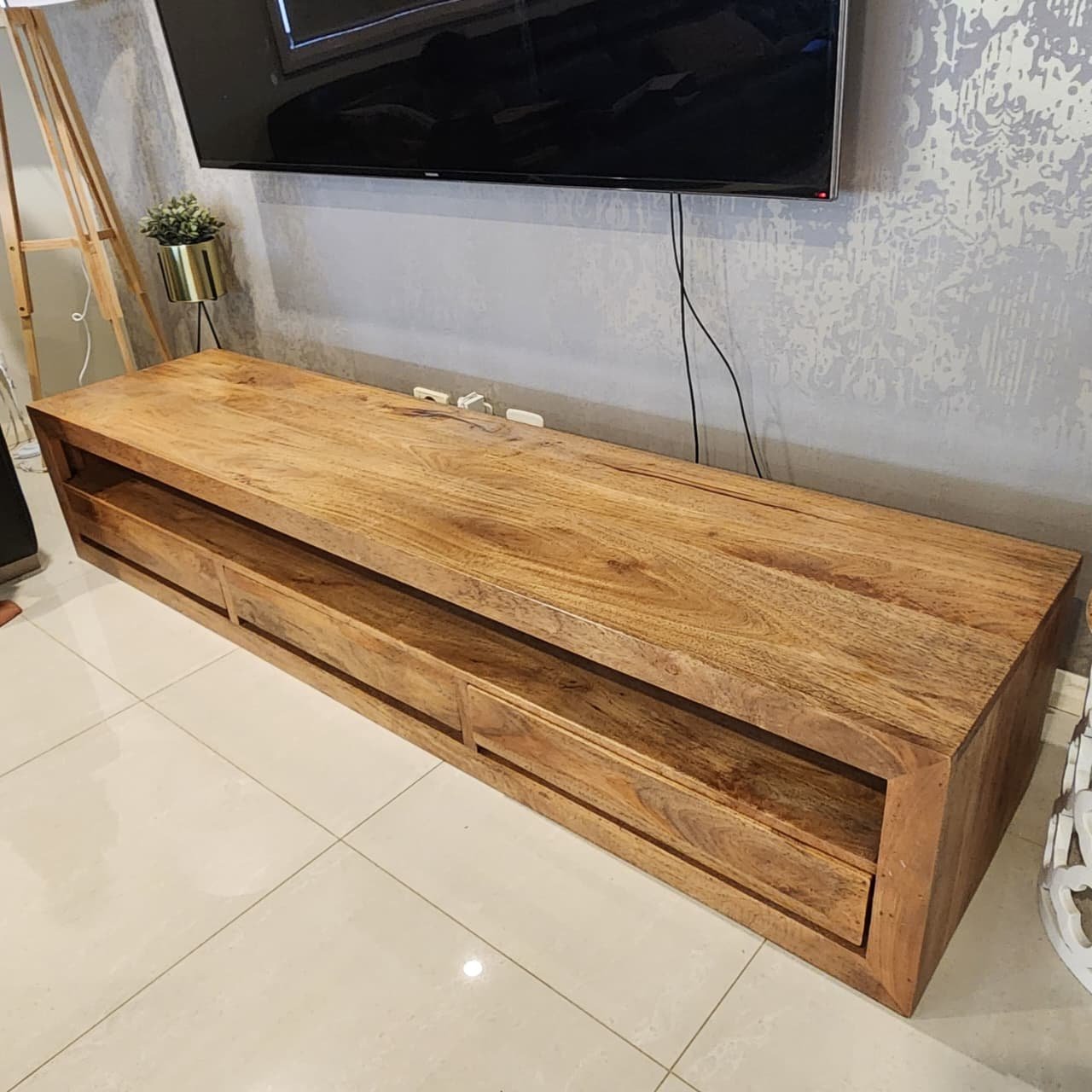Designed for practical use, this TV unit includes spacious shelves and cabinets that help you organize set-top boxes, gaming consoles, remotes, décor pieces, and everyday essentials. It becomes a stylish and functional part of your living room furniture, keeping everything neat while elevating the look of your entertainment area.