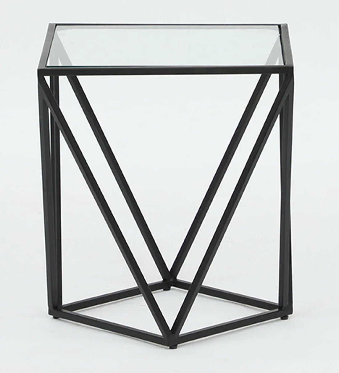 The bold geometric design paired with a sleek black finish gives this table a contemporary look that fits easily into modern, urban, or minimal interiors. Its compact size makes it ideal for bedrooms, where it can hold lamps, books, phones, or everyday essentials. In the living room, it works perfectly beside a sofa or accent chair, adding character while keeping items within reach.