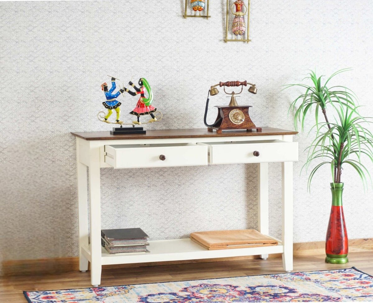 The Blue City Decor Vireya Ivory Finish Console Table is designed to add elegance, functionality, and a refined look to your home interiors. Crafted from high-quality solid wood furniture, this wooden console table offers durability and long-lasting strength for everyday use. Its smooth ivory finish gives the table a clean and sophisticated appearance that fits beautifully in modern and classic homes.