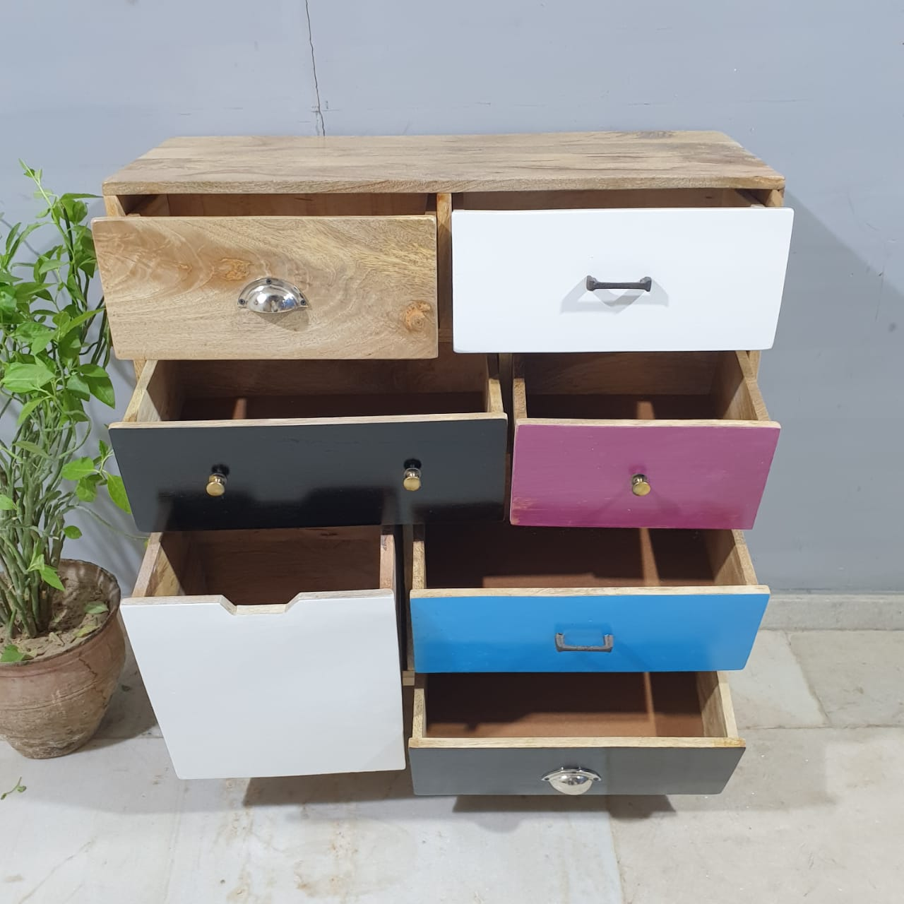 The Blue City Decor Vivid Contemporary Wooden Dresser is designed for homes that love clean lines, modern style, and long-lasting quality. Crafted from premium solid wood, this sleek chest of drawers offers a perfect blend of style and storage. Its smooth finish, minimalist look, and sturdy construction make it a beautiful addition to any room.